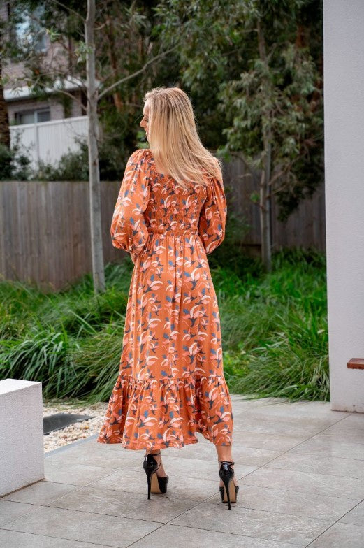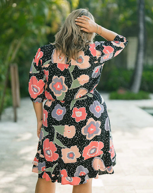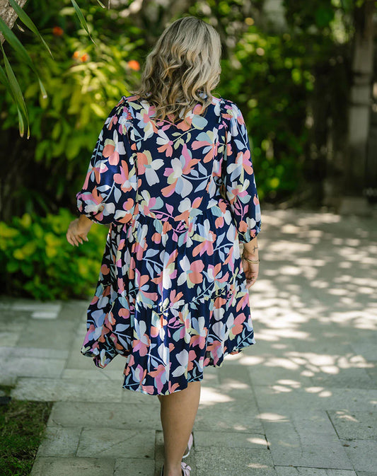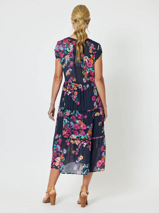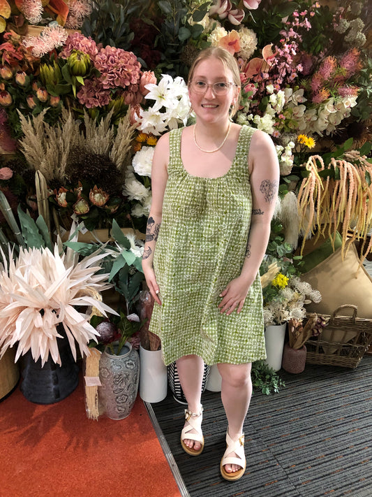 Ellis & Dewey Cross Back Detail Dress Green Floral Check