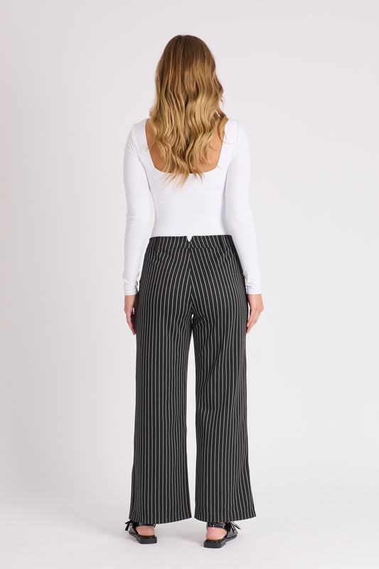 Ellis & Dewey Side Split Pant Charcoal Stripe