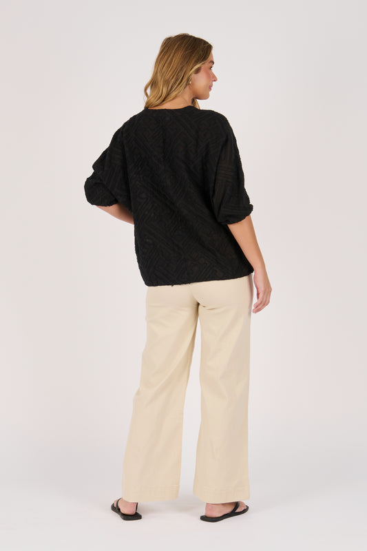 Ellis & Dewey Shirred Waist Wide Leg Pant Black