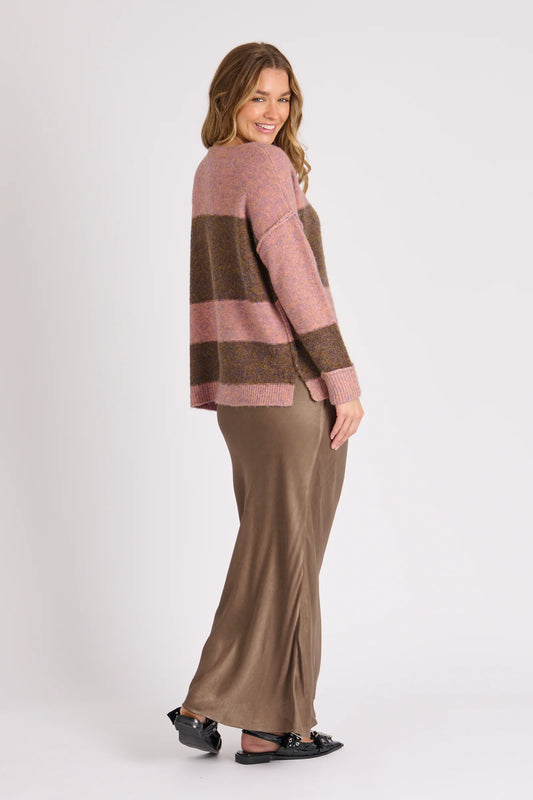 Ellis & Dewey V-Neck Side Split Jumper - Pink Stripe
