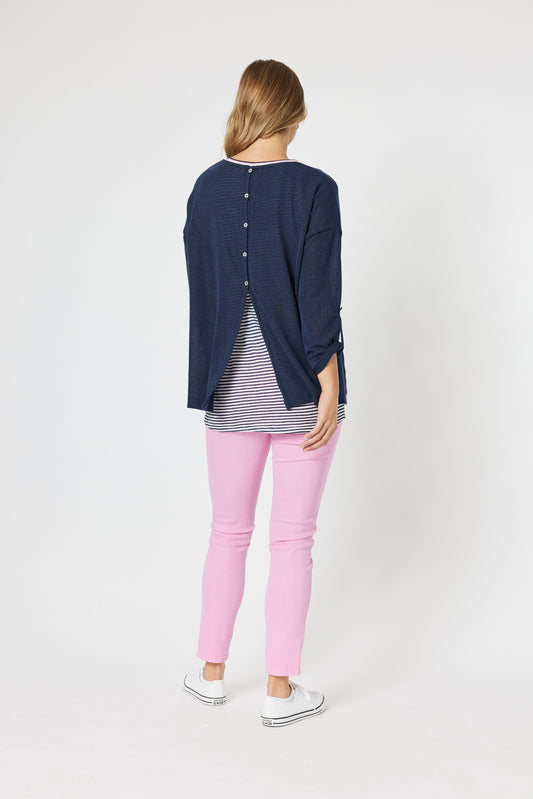 Ellis & Dewey Mock Neck Jumper Pink & Brown Stripe