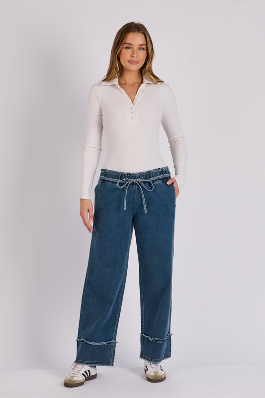 onetenwillow Cuff Detail Jeans - Mid Blue