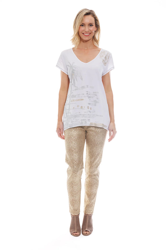 Cafe Latte Foil Snake Print Jeggings