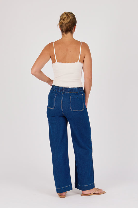One Ten Willow Elastic Waist Wide Leg Pant Dark Blue