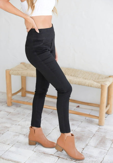 Country Denim Stretch High Waisted Pull On Jean - Black