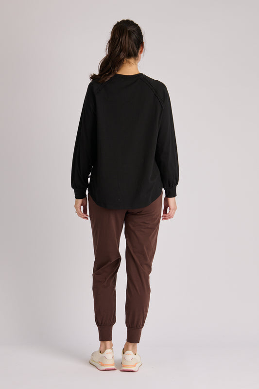 onetenwillow Scoop Neck Long Sleeve Top - Black