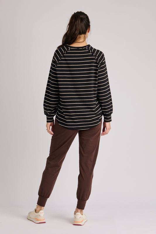 onetenwillow Relaxed Henley Long Sleeve Tee - Black/Ecru Stripe