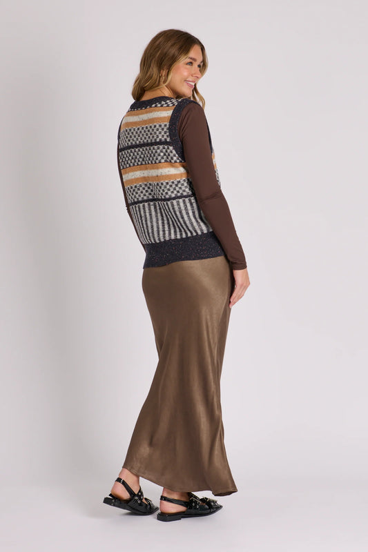 Ellis & Dewey V-Neck Raglan Jumper - Coffee Stripe