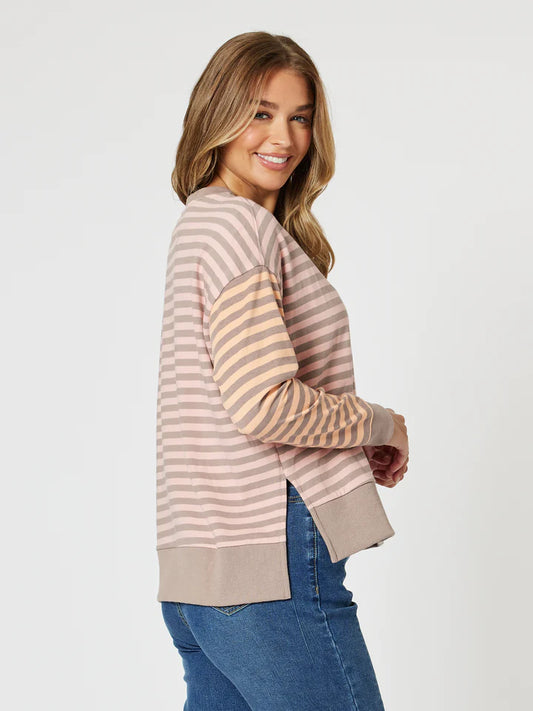 Ellis & Dewey V-Neck Side Split Jumper - Pink Stripe