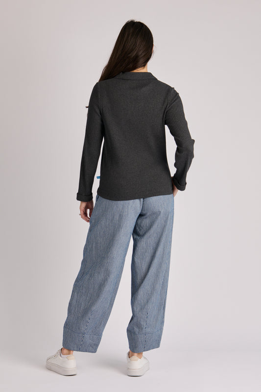 onetenwillow Longsleeve Collared Rib Tee - Black Marle