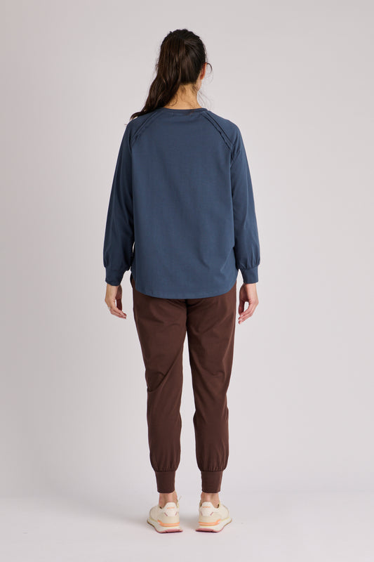 onetenwillow Collar Detail Long Sleeve Tee- Dark Navy