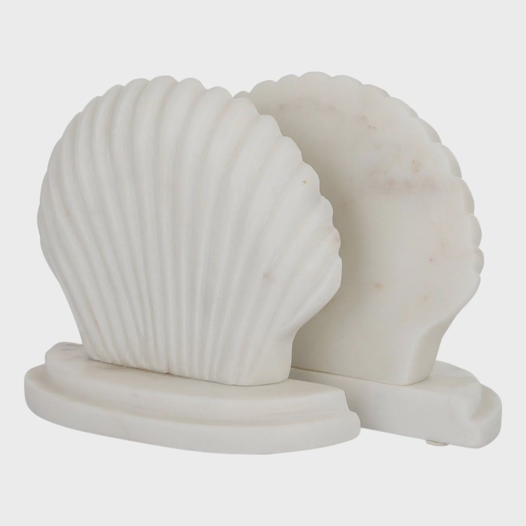 Add a touch of charm to your space with the Edie bookends. Made from white marble these sculptural bookends feature a clam shell design to elevate your interior while also being functional. Place on opposite ends of your book collection to keep upright.