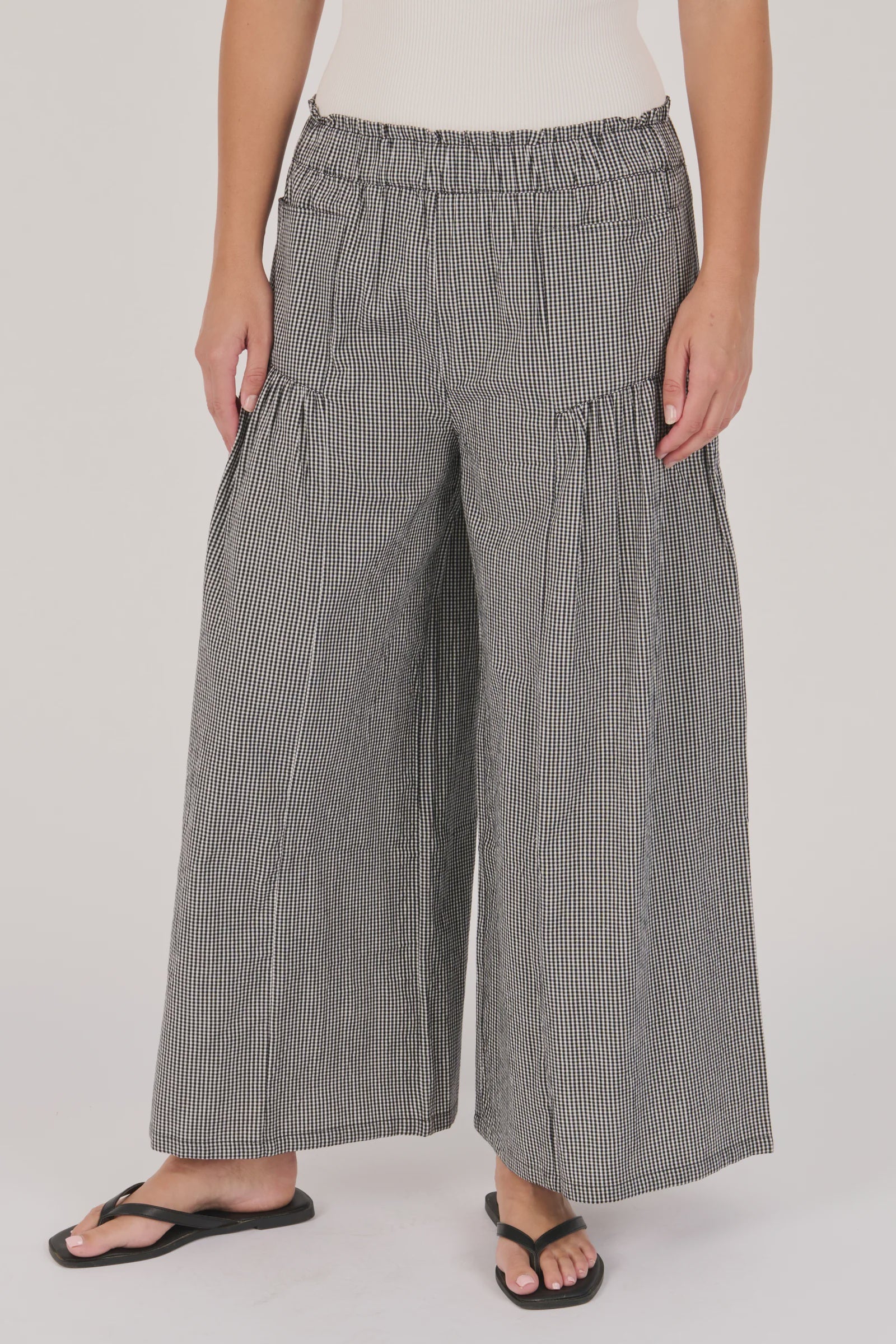 Ellis & Dewey Gather Detail Pant Black Check