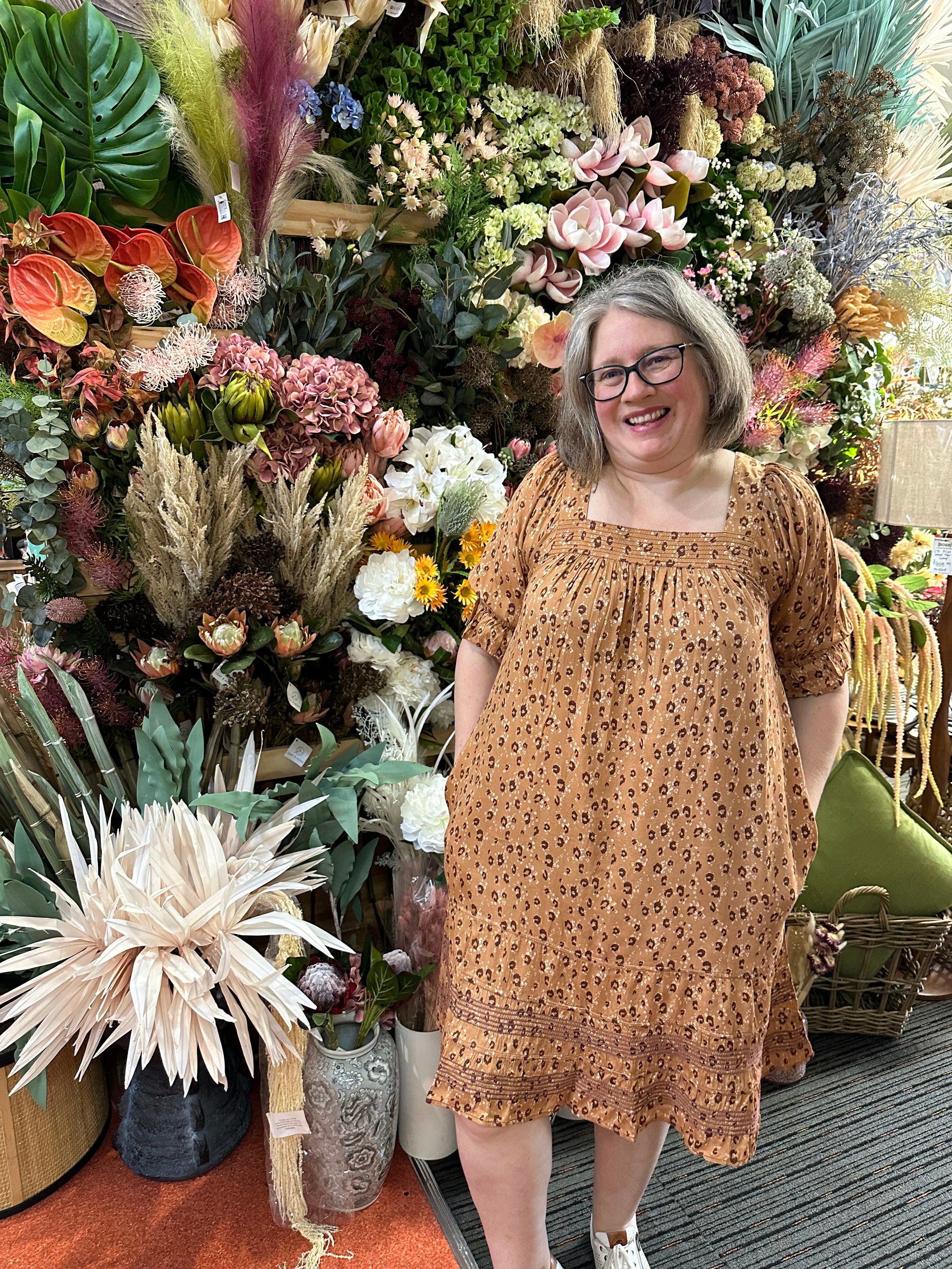 Ellis & Dewey Stitch Detail Ruffle Dress Ditsy Leopard