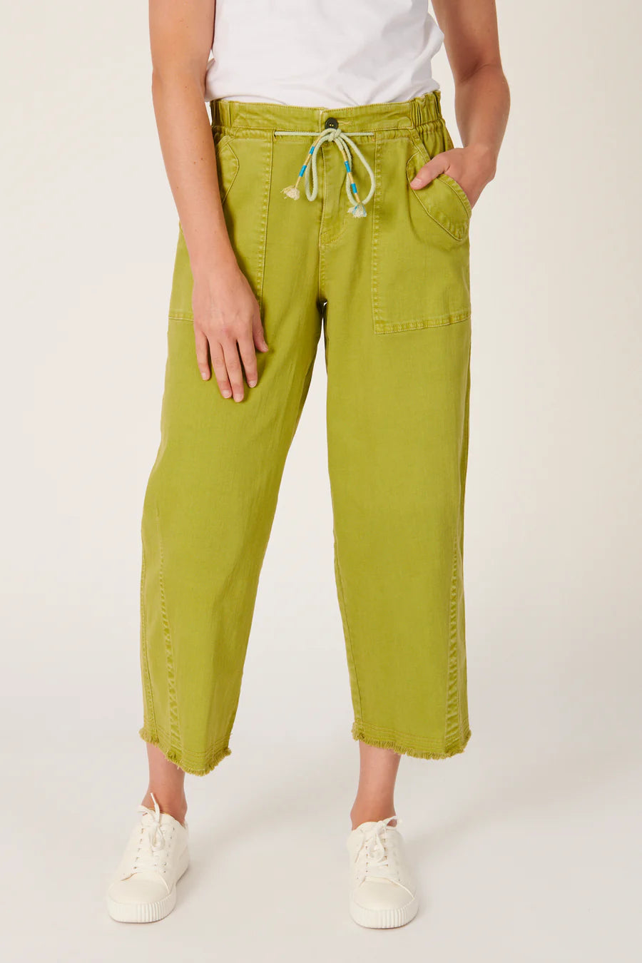 Ellis & Dewey Tie Waist Baggy Jeans Moss