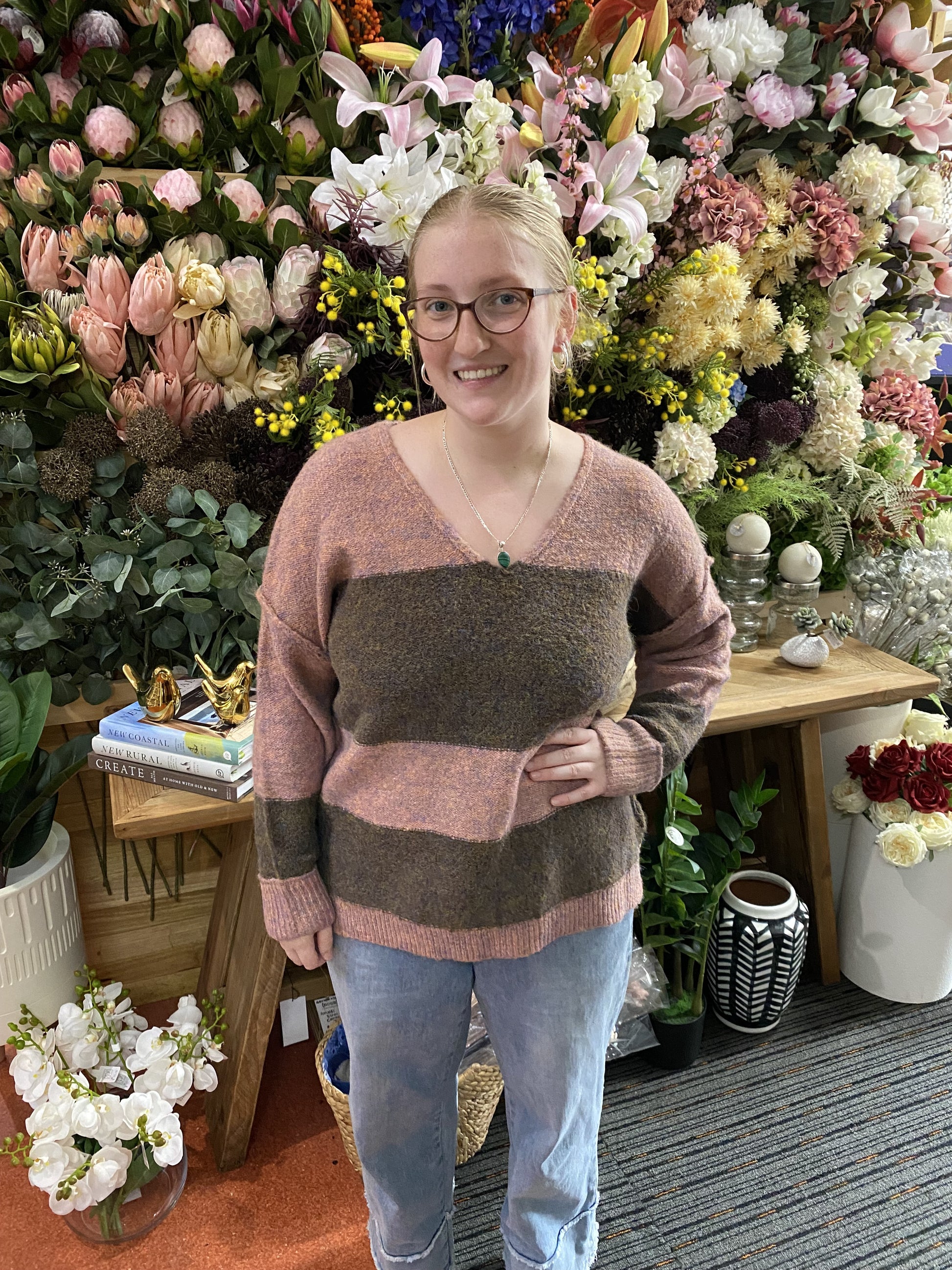Ellis & Dewey V-Neck Side Split Jumper - Pink Stripe