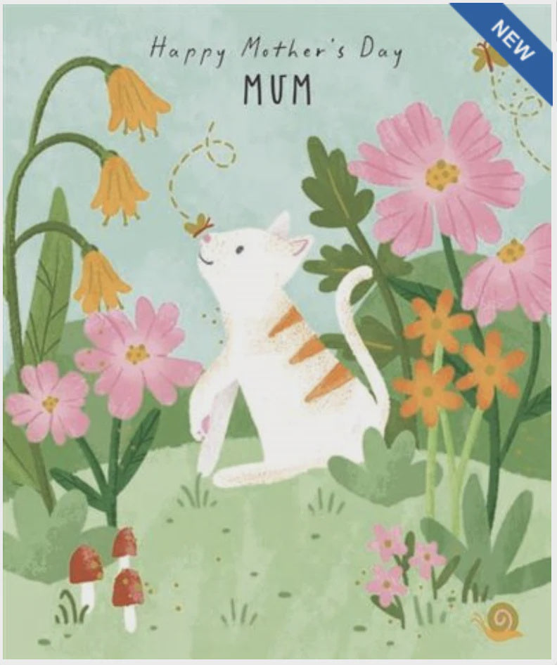 Paper Rose Mother's Day Card – Mum Cat with Flowers & Butterfly | Gold Foil Fable Design