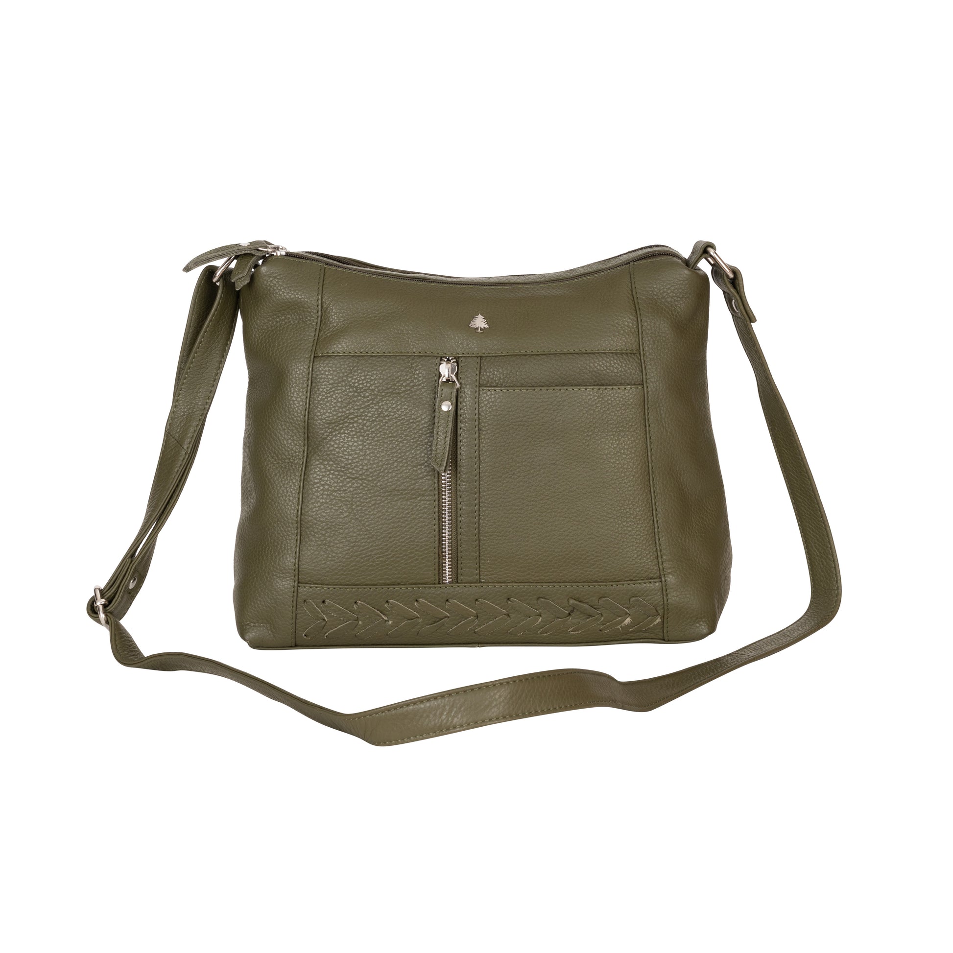 Greenwood Leather Savannah Woven Detail Crossbody Bag Olive