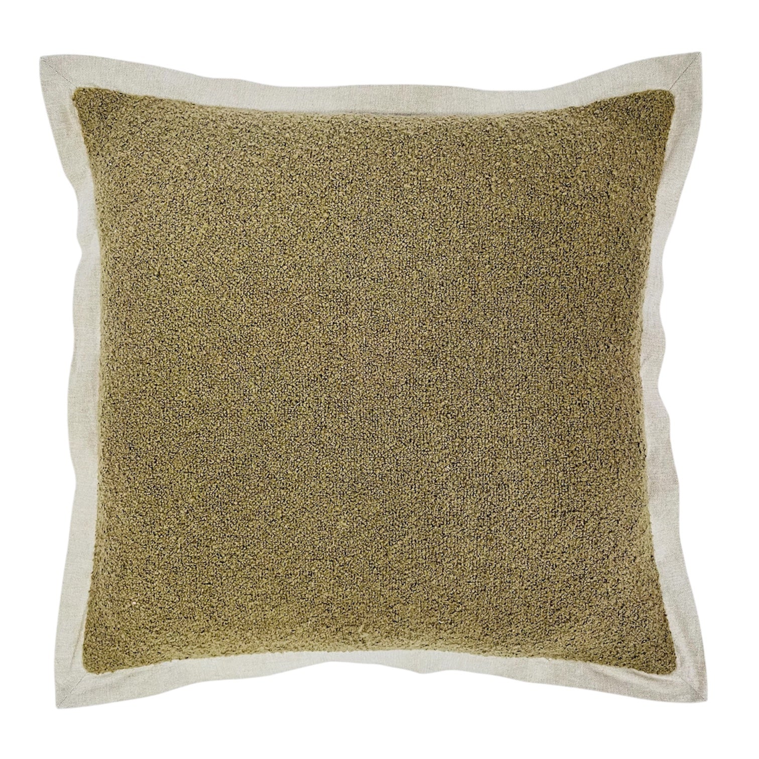 Grounded and tactile, our Esla Cushion in olive introduces a rich, earthy tone to any interior. Crafted with a woven bouclé texture and finished with a soft neutral flange edge, this 50x50cm cushion blends depth and softness effortlessly. Feather filled for comfort and loft, it’s a refined yet relaxed addition to any sofa, bed, or armchair.