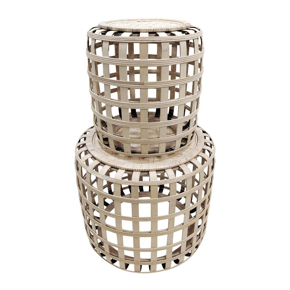 The Cayman Tables are a bamboo sustainable styling option. They feature a windowpane-gingham woven body with a delicately woven tabletop design. These bamboo tables are handmade which makes them perfectly imperfect, each set of tables will have a uniqueness that comes from only a loving, handmade process. Style these pieces together or separately. Available in 2 sizes.