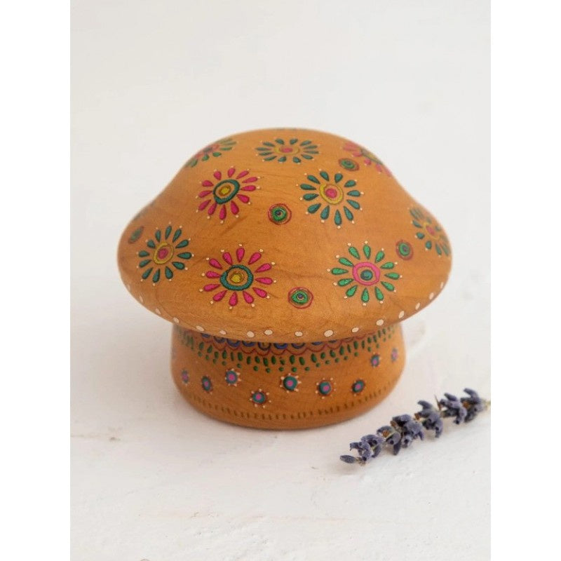 We didn't spare any detail when it came to creating our Mushroom-Shaped Wooden Trinket Box! This adorable trinket has a whimsical design with painted flowers and patterns all over!