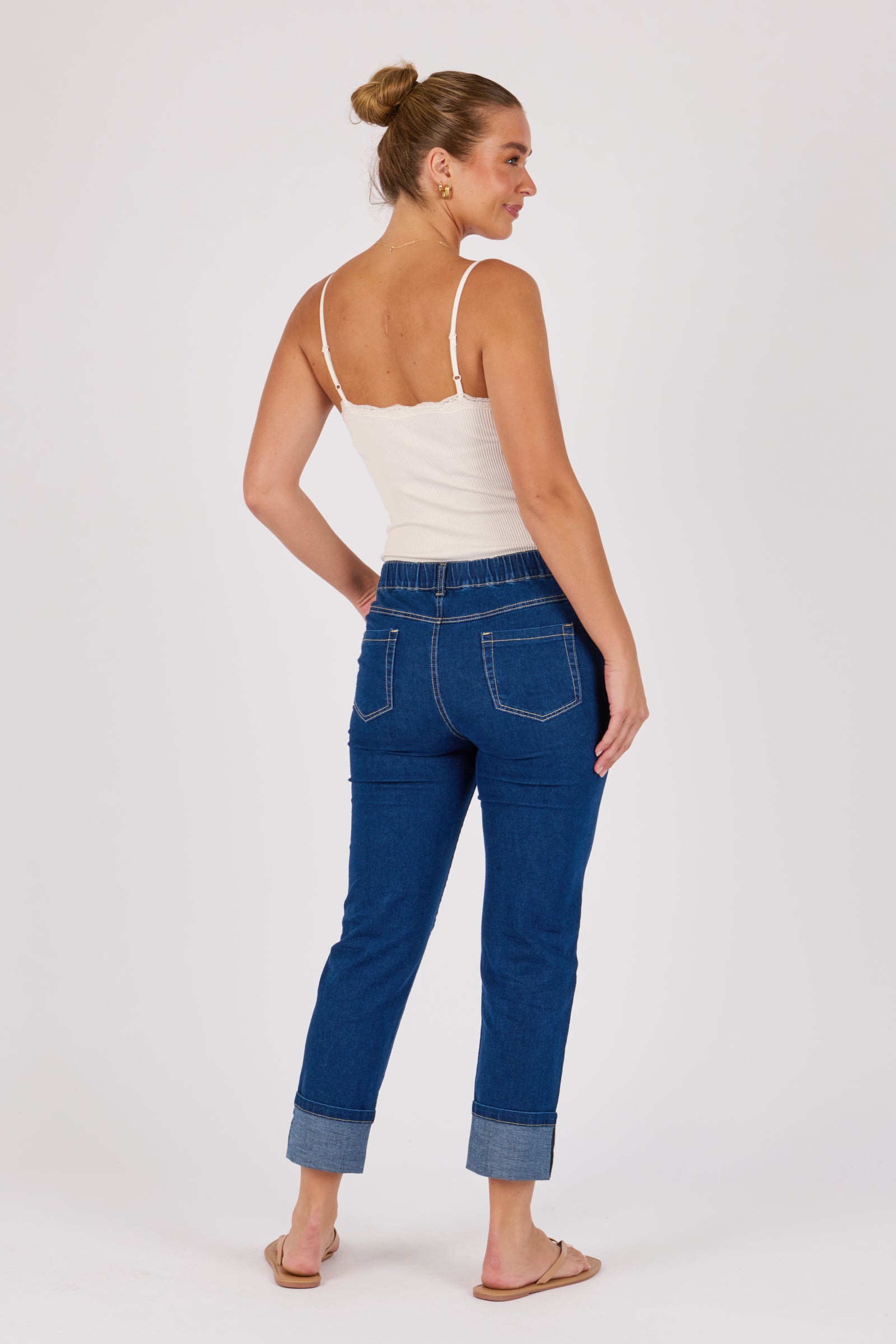 One Ten Willow Cuff Detail Straight Leg Jean - Dark Blue