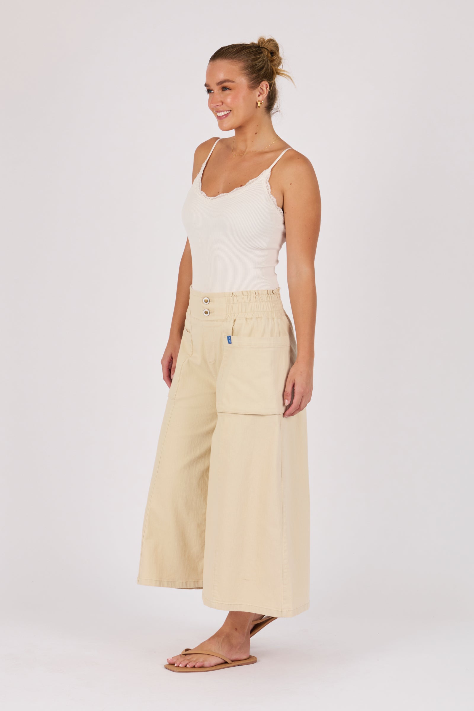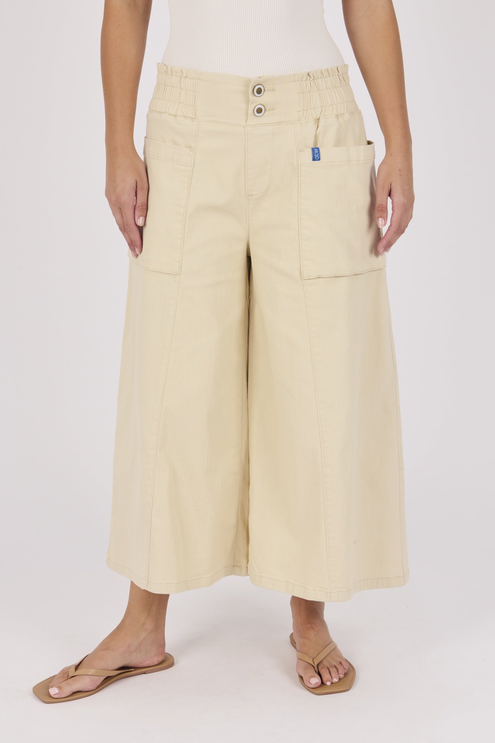 One Ten Willow Patch Pocket Wide Leg Jean- Ecru