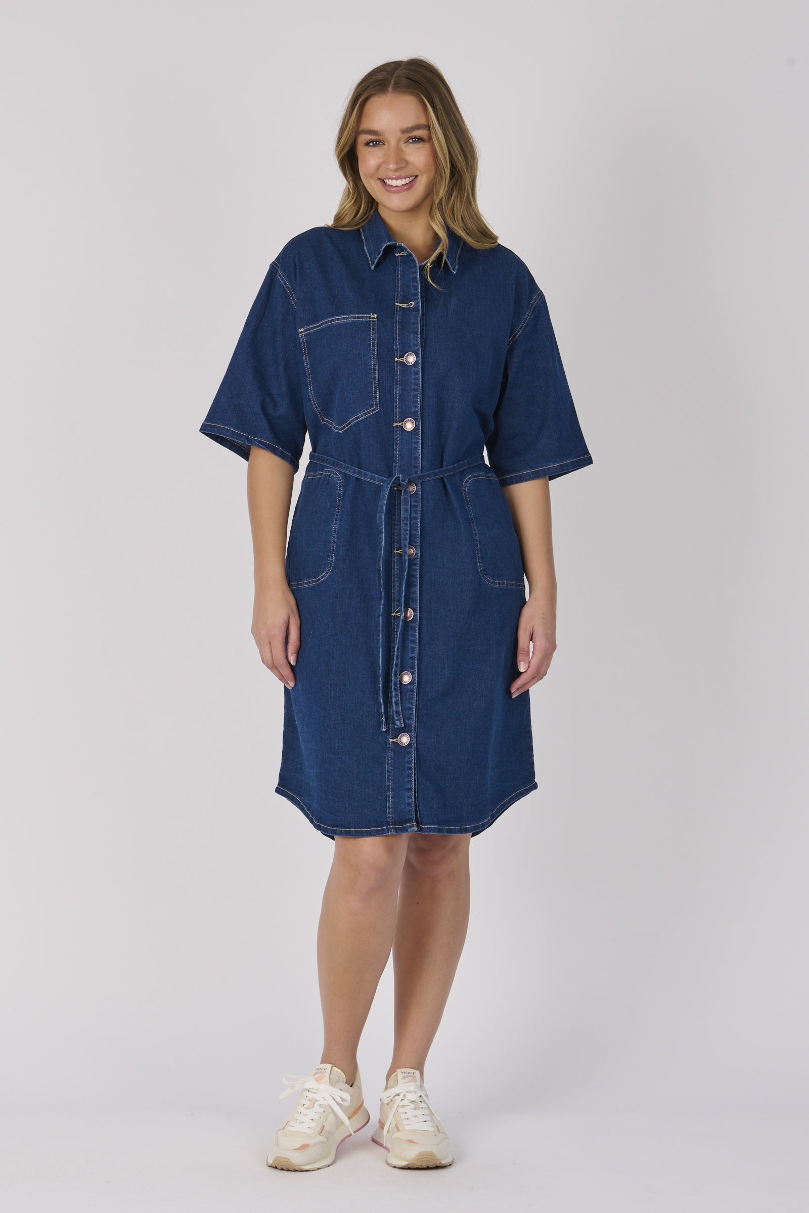 One Ten Willow Tie Detail Dress Dark Blue