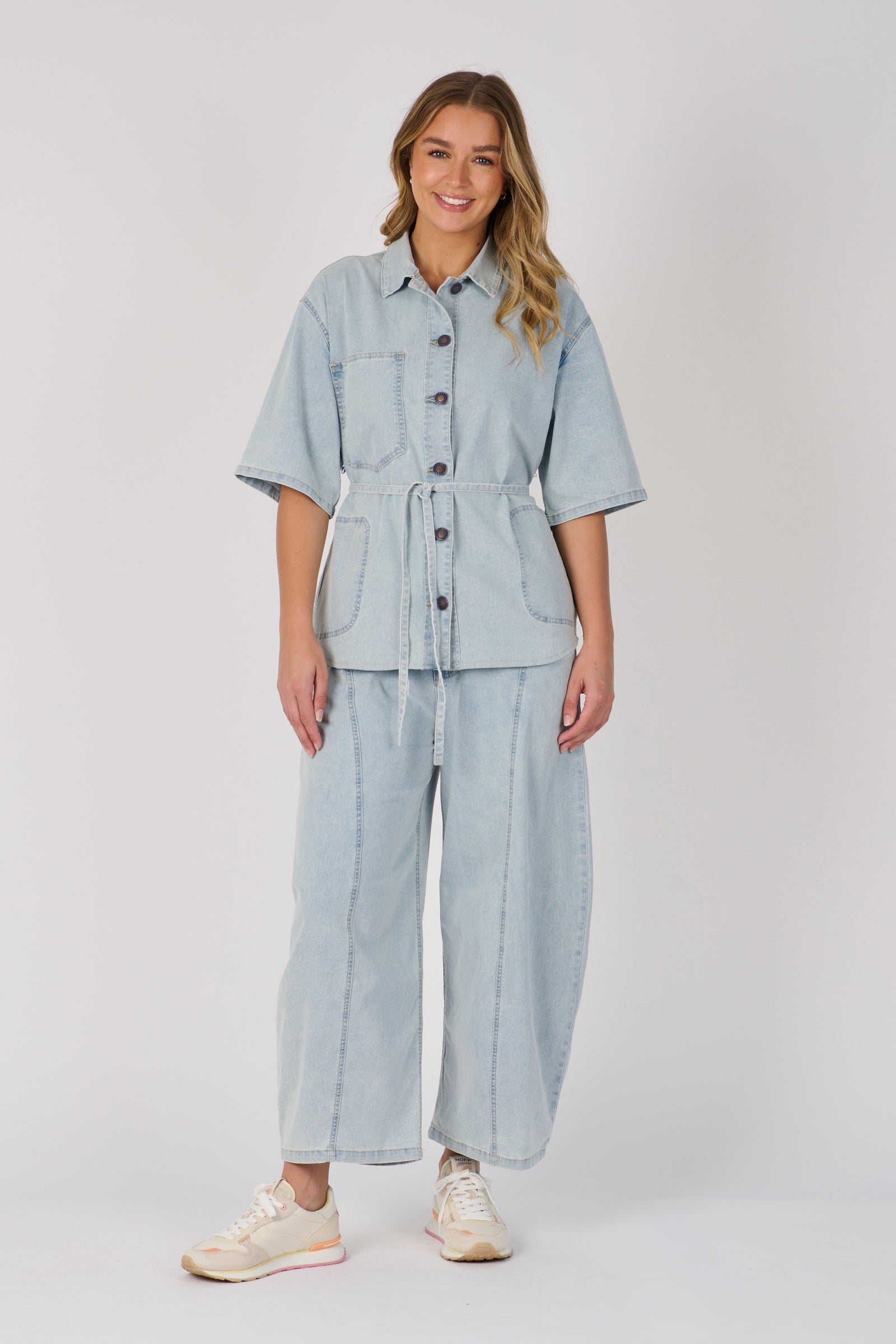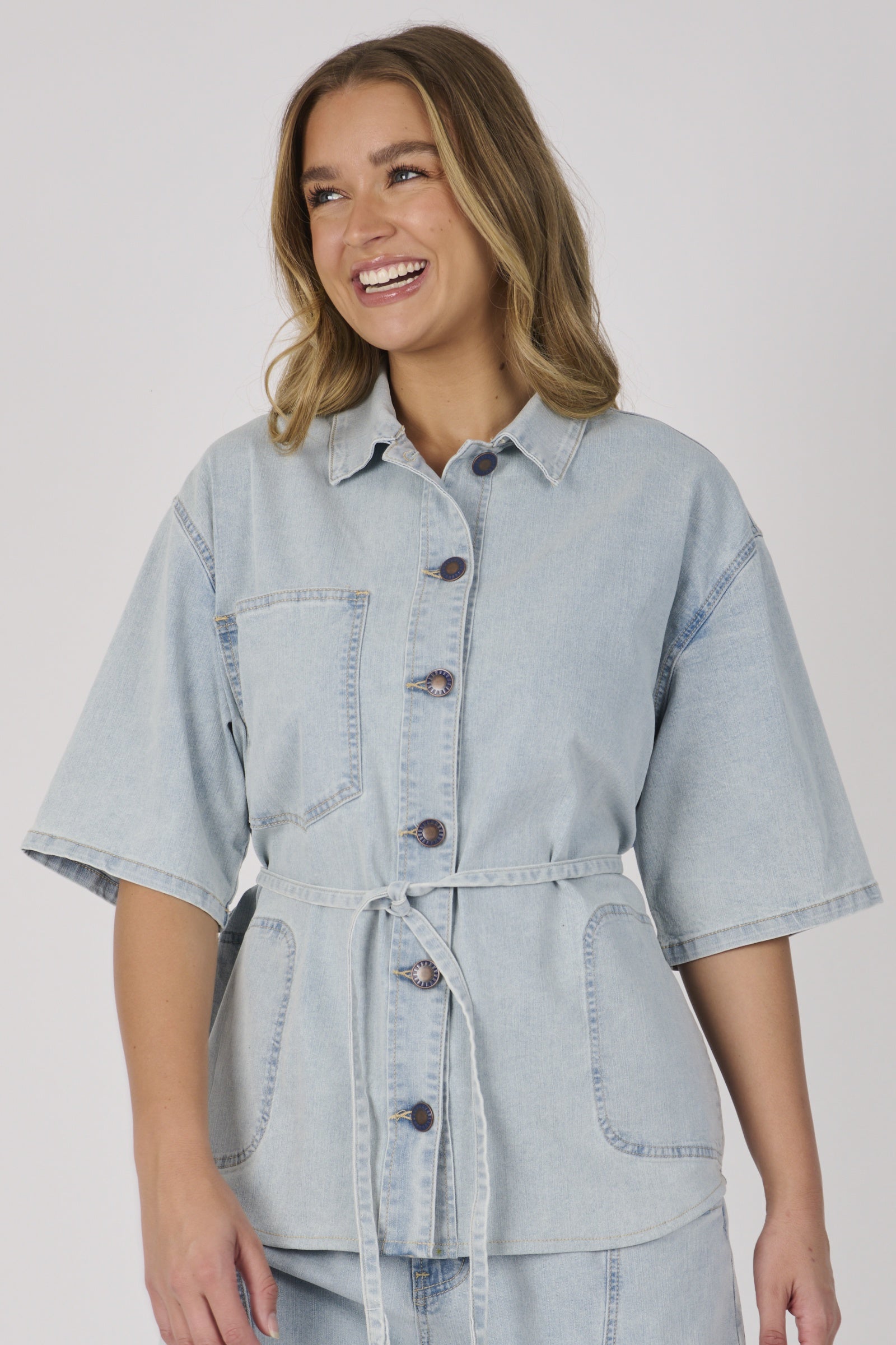 One Ten Willow Tie Detail Shirt Light Blue