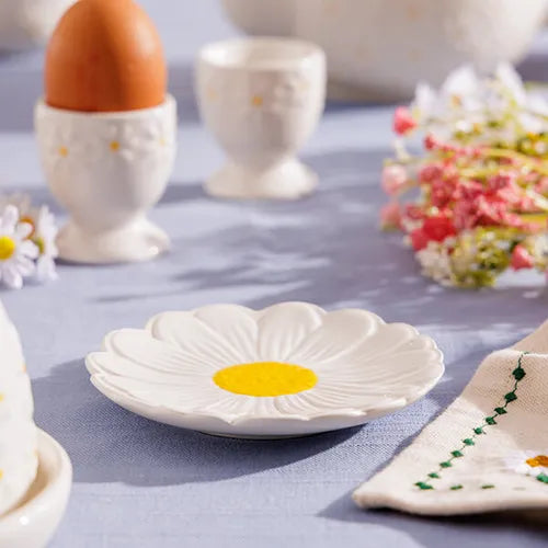 This Price & Kensington Daisy Kitchen Tidy features a white glaze with whimsical daisy embossments with a delicate hand painted yellow centre.