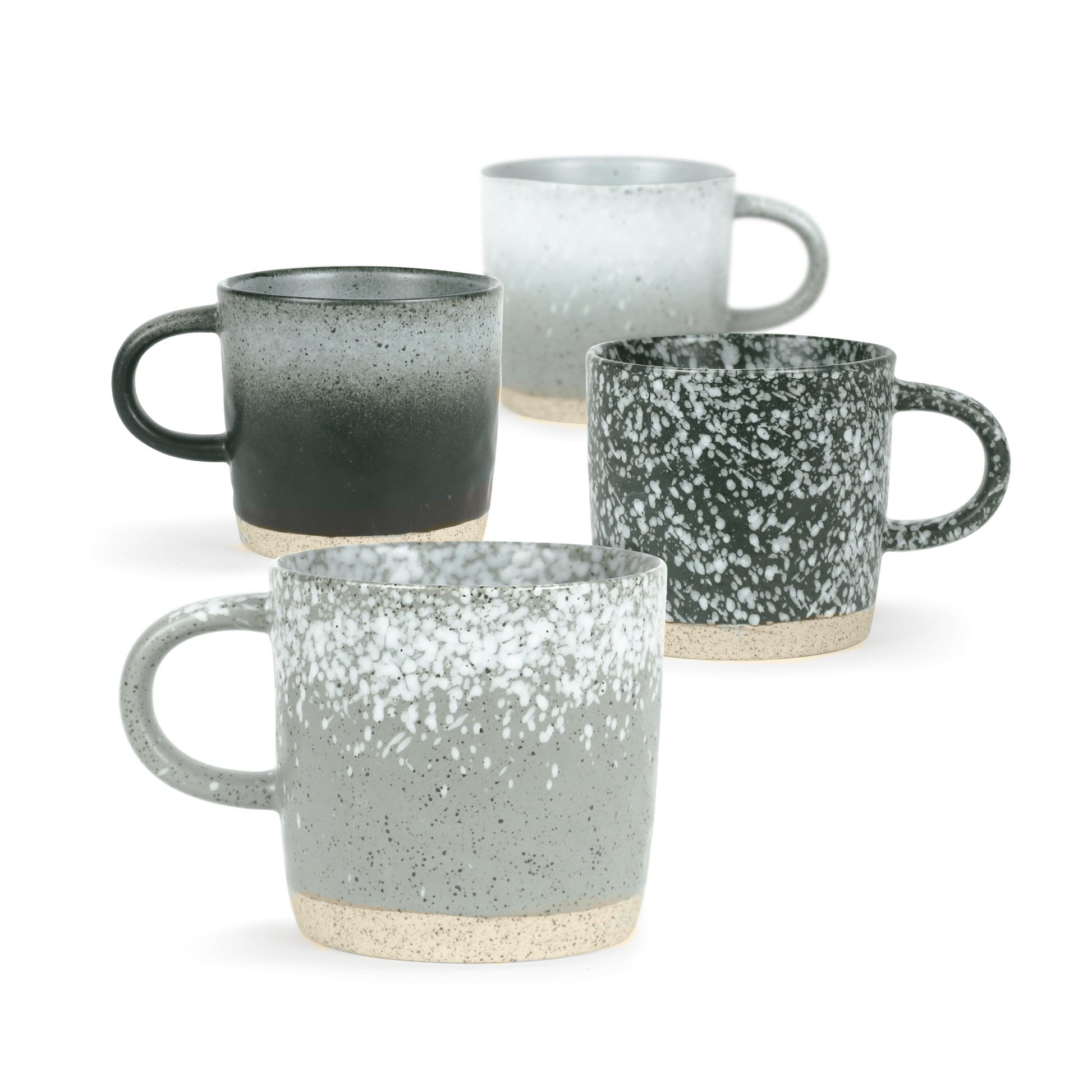 Set of four, individually hand glazed stoneware mugs. Perfectly suited for your home.