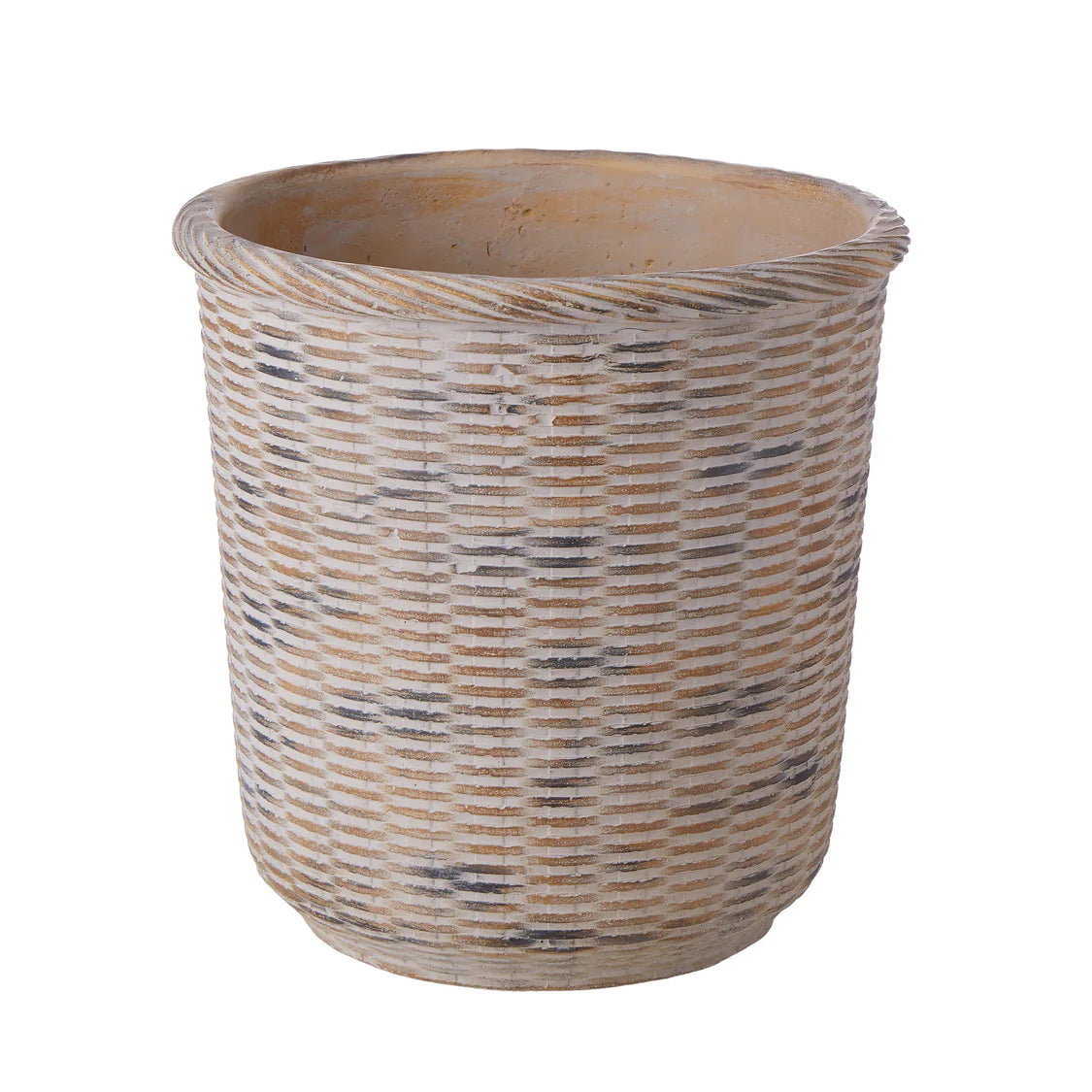 It displays a rustic and textured appearance with patterns reminiscent of a woven reed basket, making it a brilliant focal point in any given room.