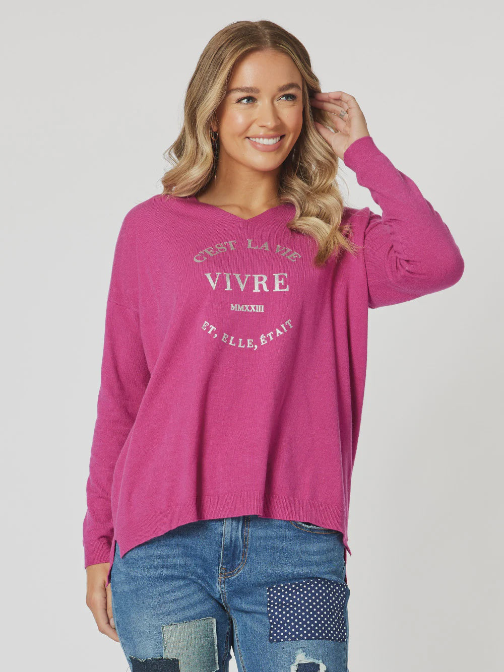 Threadz Basics Cest La Vie Sweat Fuchsia