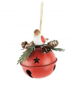 Christmas Bird on Bell Hanging Decoration Red & Green 11cc H11x10x11cm
