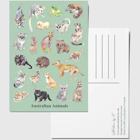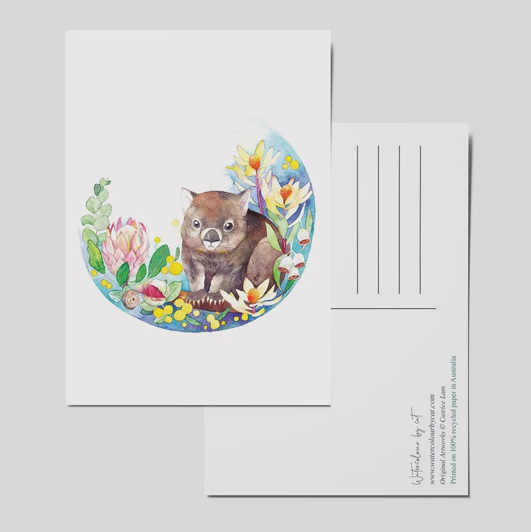 Each postcard size is A6 (105 x 148mm). Printed on 350gsm uncoated paper which is a soft natural white 100 % recycled paper with vegetable ink.