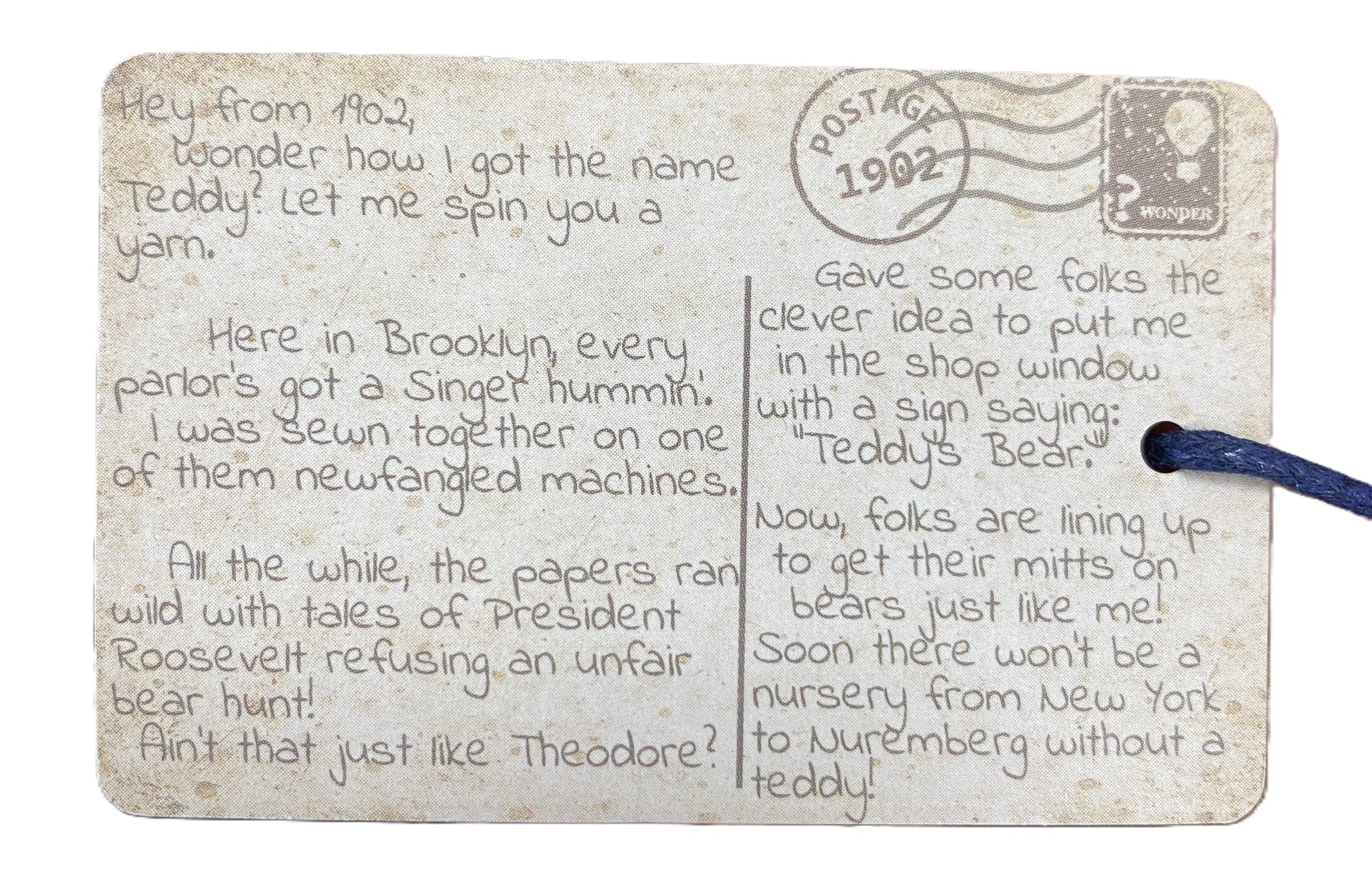Lumber back 120 years with me, Theodore, the very first plush teddy from 1900s Brooklyn. I’m known to be quite the legend among my kind. And as for my name, well, did someone important preside over it?