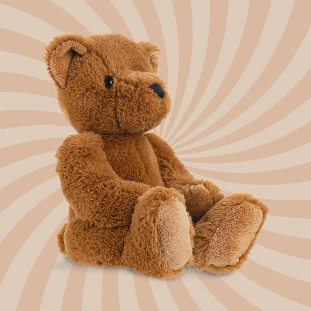 With golden fur, jointed limb charm, and a look that’s stood the test of time, I’m a plush rooted in history and made for keeps.