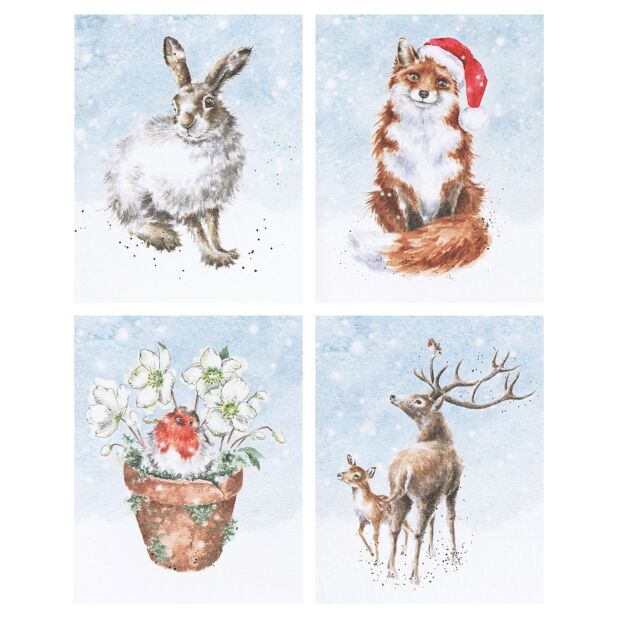 16 box pack (91x77mm) , featuring 4 each of stag, robin, fox & hare.