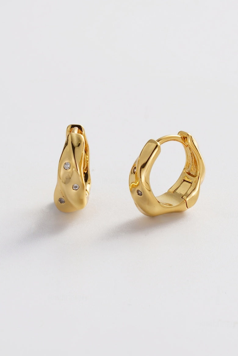Featuring a fluid, molten texture and three delicate crystal accents, these earrings offer a modern twist on a classic silhouette.