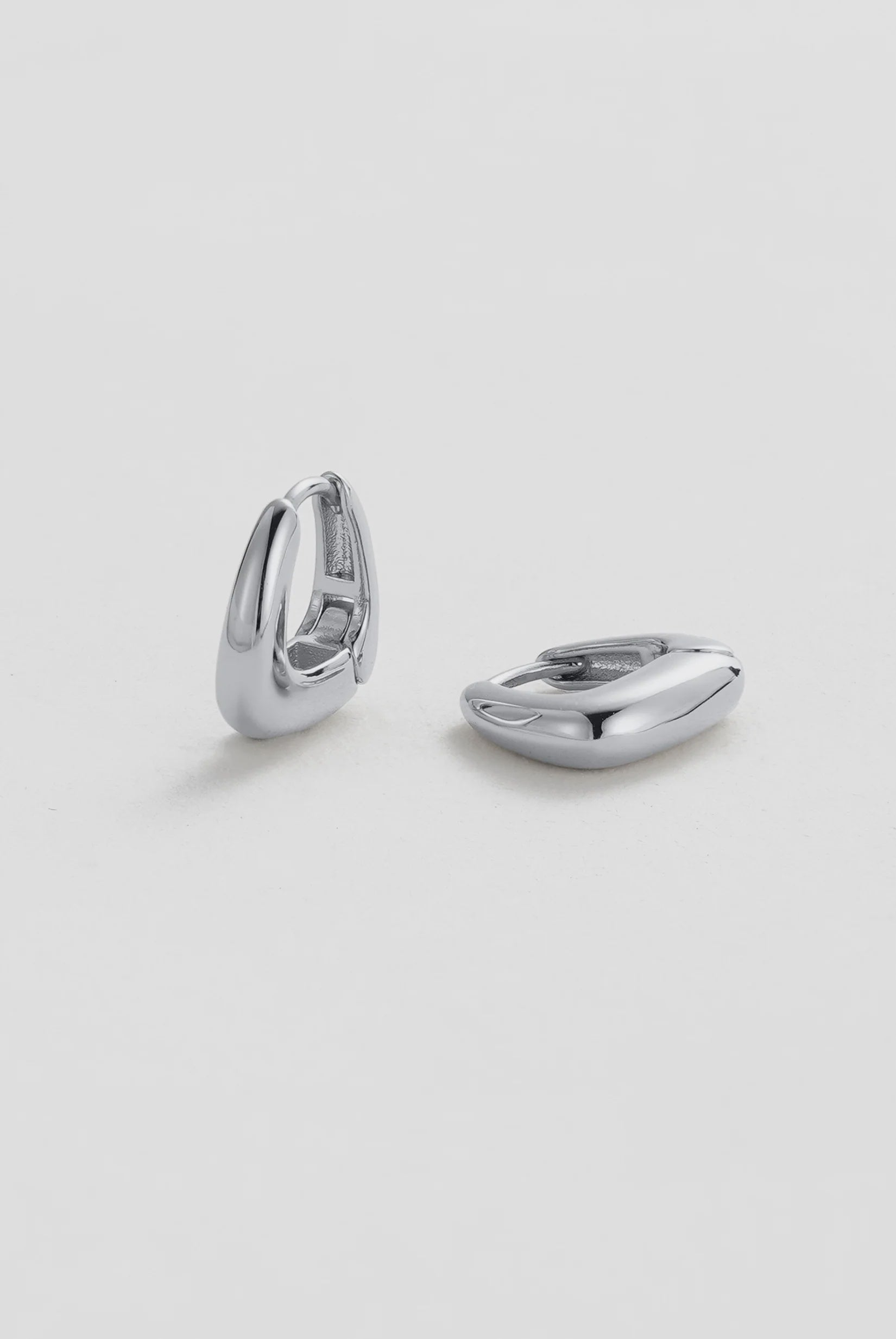 The Neve Huggie features a smooth curved design with a high-shine silver finish, making it a timeless everyday staple. Perfect for adding a touch of understated elegance to any look – wear solo or stack with your favourite hoops for a modern layered style.